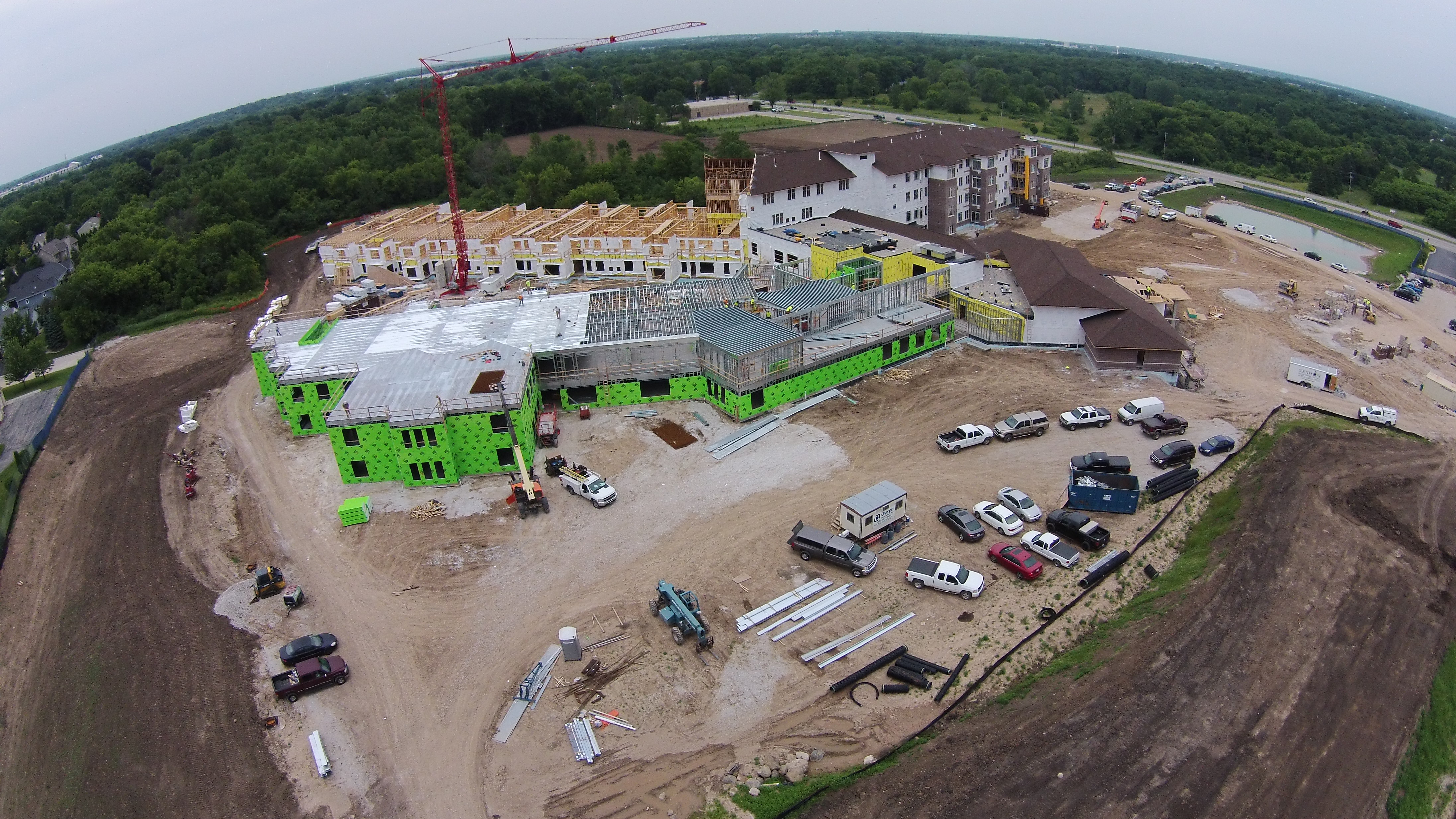 The following photos were taken of Dickson Hollow by a crew member of VJS Construction.  We appreciate their sharing these photos with us!  The first photo is the view from Pilgrim Road.  The second photo is the view from Lisbon Road.  On the Lisbon Road view, you can see BPCs entrance on the right.  It’s the one story portion with the roof finished except for the overhang on the entrance area.